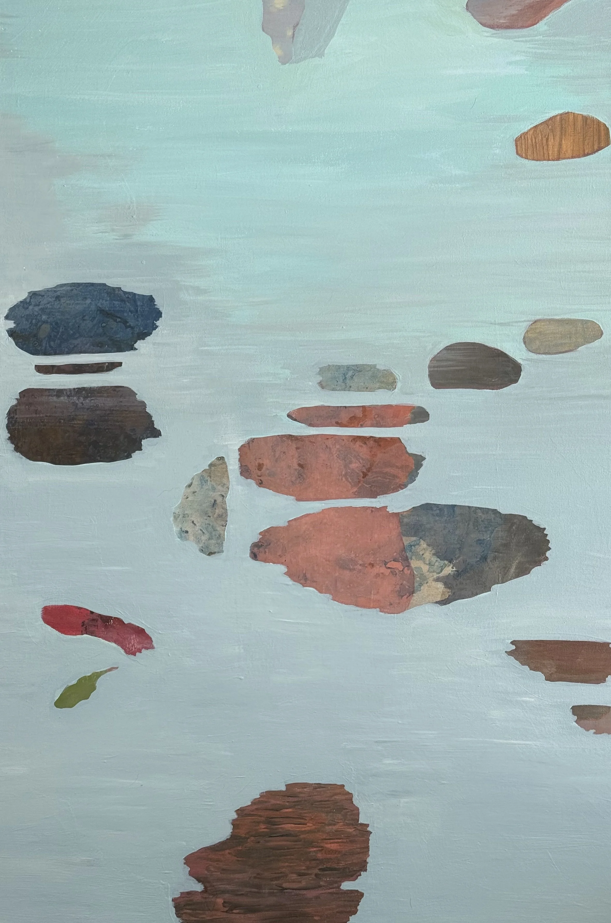 Particulate and fluid matter move continuously and permeate our world. Rain falls and flows into streams; streams become rivers and run into the sea; seawater evaporates and descends again as rain. This rain nourishes trees that grow in the earth and eventually decay, feeding new seedlings. Matter has what Jane Bennett calls “vitality,”—an energy that ruptures from an event opening new possibilities and new relationships. Transitional Acts: Suspension and Materiality in the Event. Jill McIntosh, 2023.